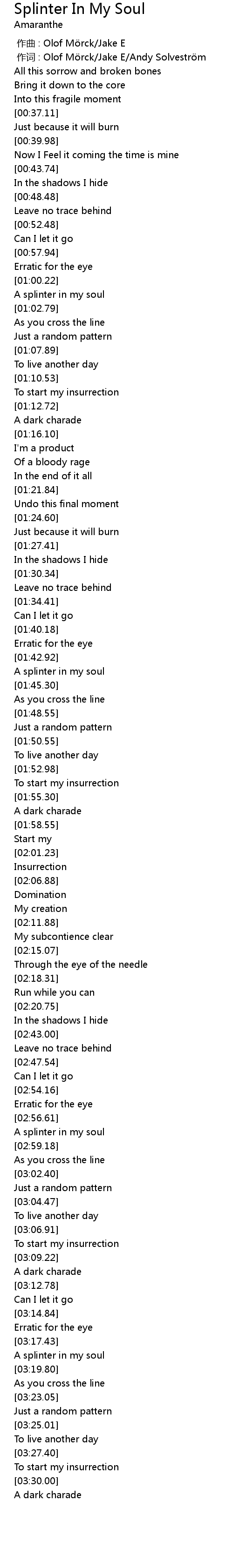 | [00:01.000] | zuò cí : Olof M rck Jake E Andy Solvestr m |