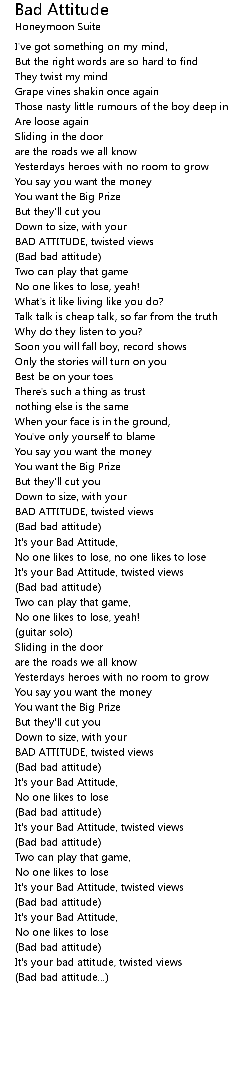 (Bad bad attitude) |