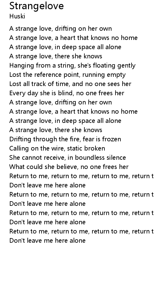 | A strange love, in deep space all alone | |