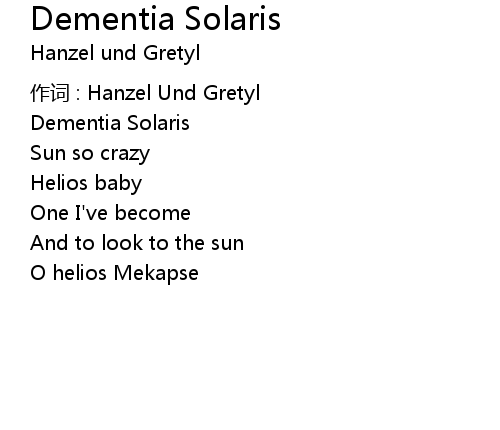 | Song | Dementia Solaris |