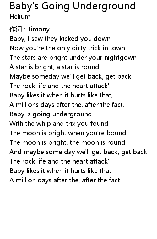 | Song | Baby's Going Underground |