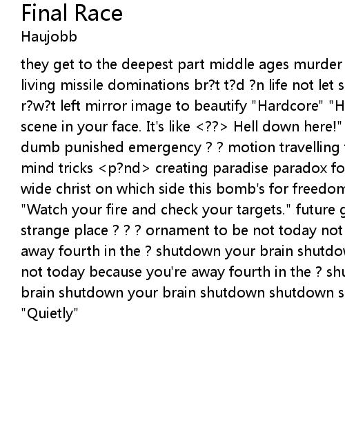 they get to the deepest part middle ages murder legalized severity seeking living missile dominations br?t t?d ?n life not let survive not let survive r?w?t left mirror image to beautify "Hardcore" "Hardcore, I" "Hardcore, I <??> scene in your face. It's like <??> Hell down here!" me my worst enemy deaf and dumb punished emergency ? ? motion travelling to talk too late bet love or fate mind tricks <p?nd> creating paradise paradox fortune paradox fortune eyes open wide christ on which side this bomb's for freedom and mortal pride "Quietly" "Watch your fire and check your targets." future grace ? ? ? lying to tell in a strange place ? ? ? ornament to be not today not today not today because you're away fourth in the ? shutdown your brain shutdown your brain not today not today not today because you're away fourth in the ? shutdown your brain shutdown your brain shutdown your brain shutdown shutdown shutdown shutdown shutdown shutdown! "Quietly" |