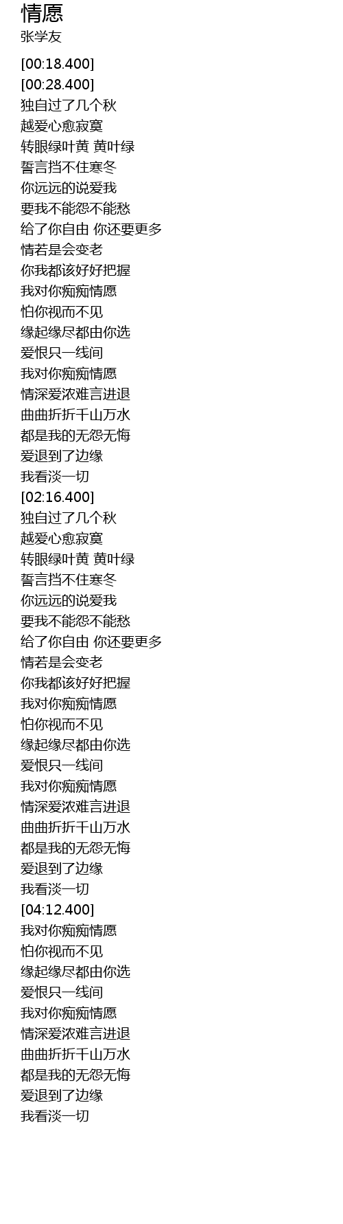 | [04:20.400] | wo dui ni chi chi qing yuan |
