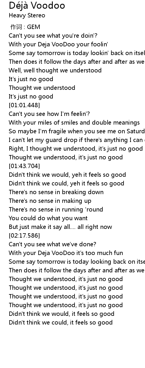| [00:20.892] | With your Deja VooDoo your foolin' |