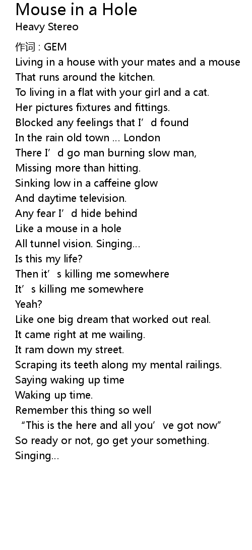 | Song | Mouse in a Hole |