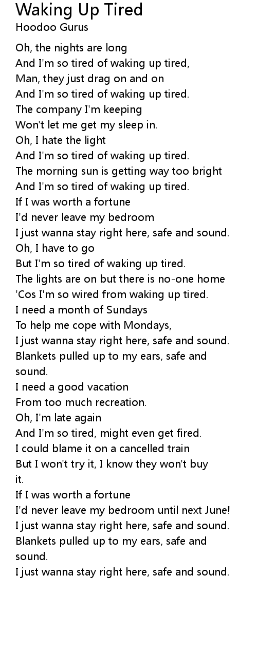 'Cos I'm so wired from waking up tired. |