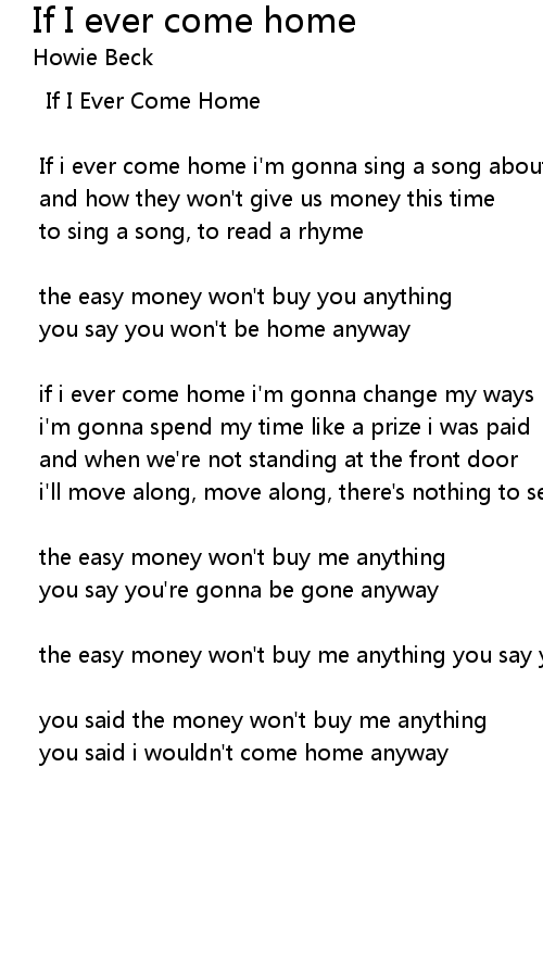 If i ever come home i'm gonna sing a song about the day that i went away |
