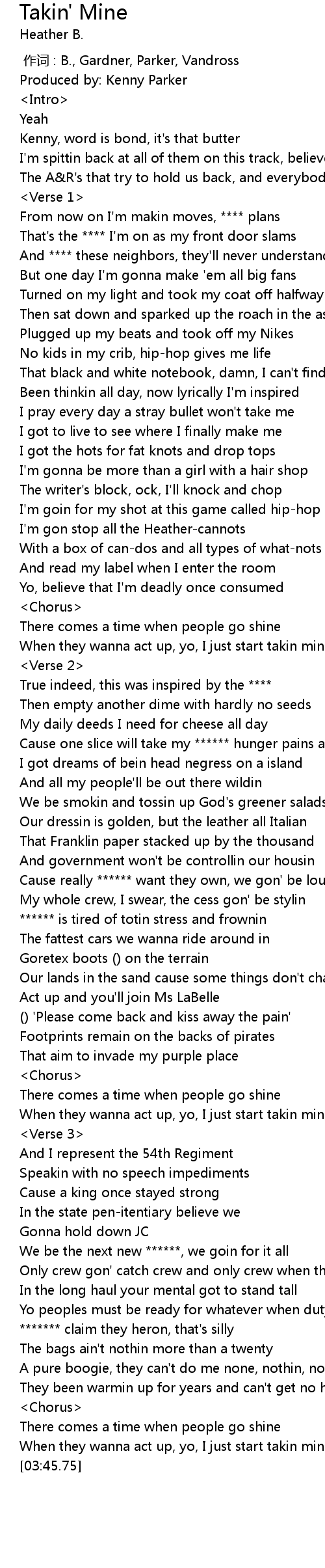 | [03:01.04] | We be the next new ******, we goin for it all |
