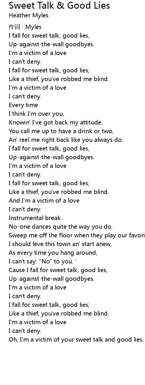 | I fall for sweet talk, good lies | |