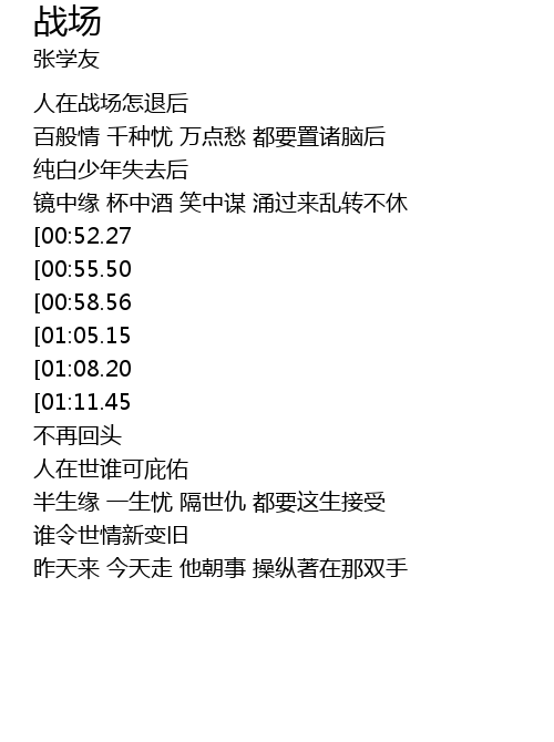 | [00:27.48] | rén zài zhàn chǎng zěn tuì hòu |