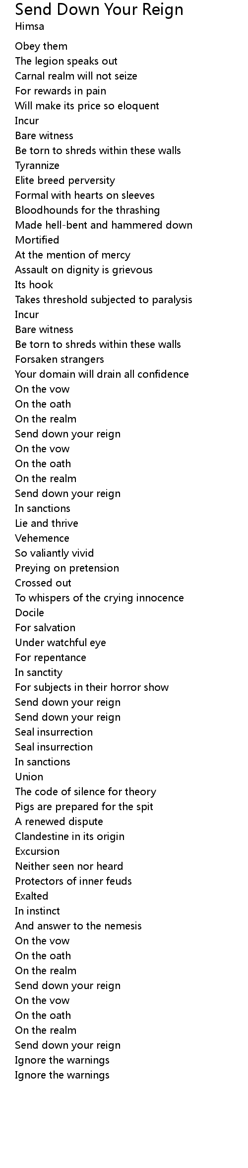 Send down your reign |