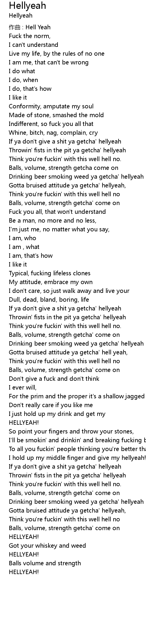 | If ya don' t give a shit ya getcha' hellyeah | |