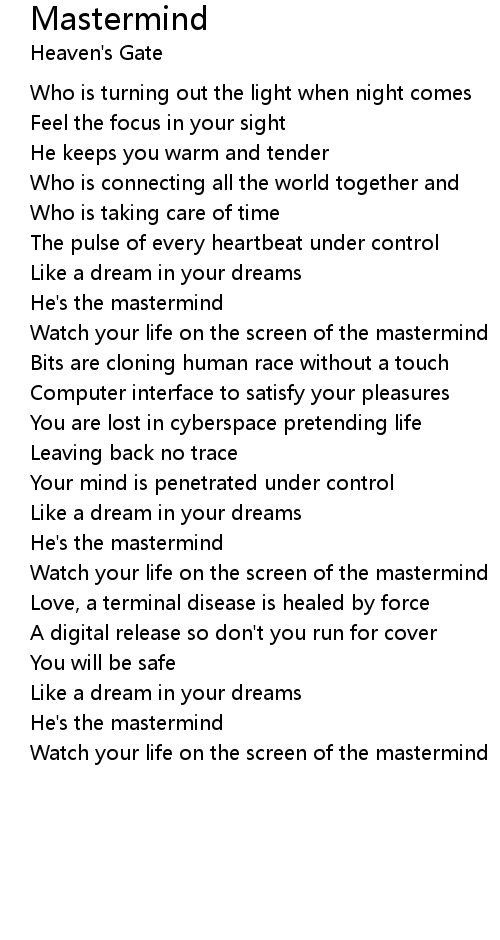 Watch your life on the screen of the mastermind |