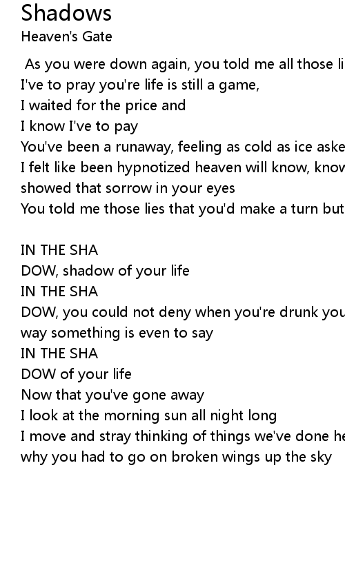 I move and stray thinking of things we've done heaven will know, know the reason why you had to go on broken wings up the sky |