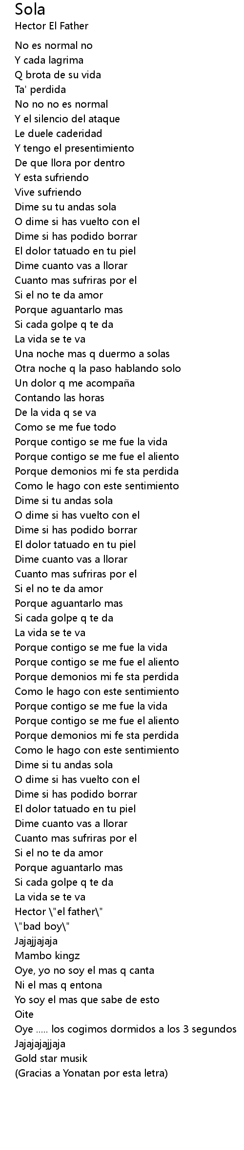 | Gracias a Yonatan por esta letra |