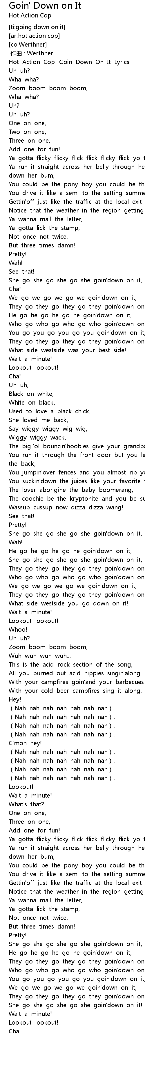 | [00:14.120] | Hot Action Cop -Goin Down On It Lyrics |