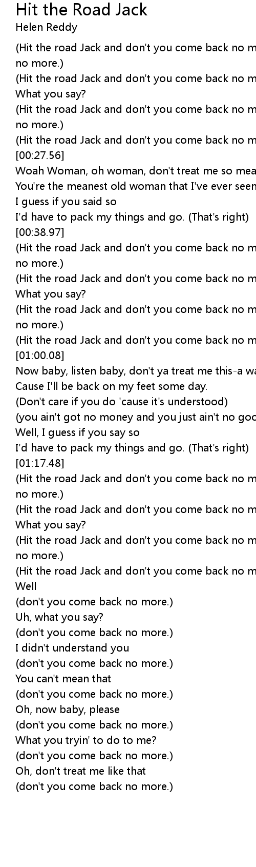(Hit the road Jack and don't you come back no more, no more, no more, no more.) |