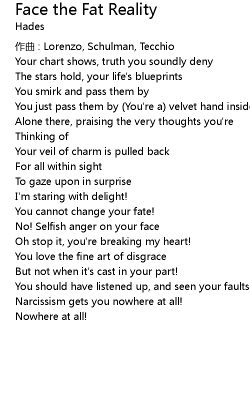 | Song | Face the Fat Reality |