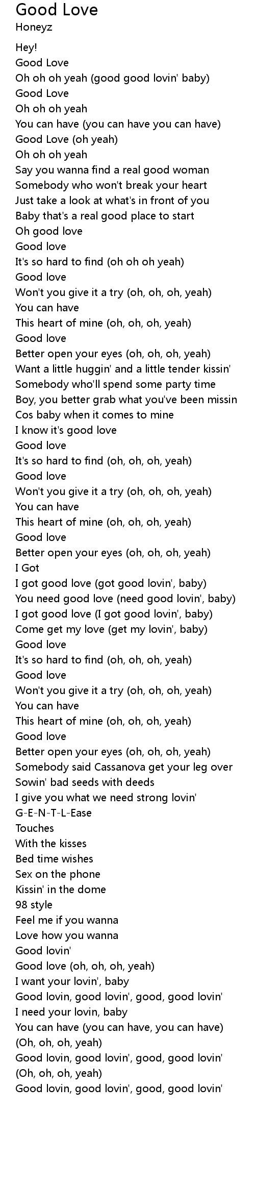Good love (oh, oh, oh, yeah) |