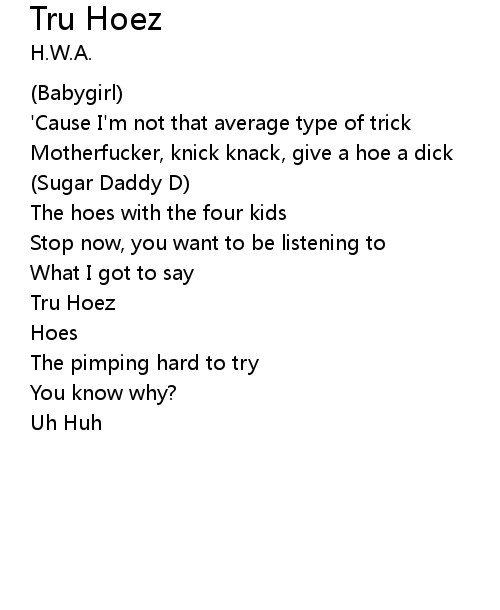 | Motherfucker, knick knack, give a hoe a dick | |
