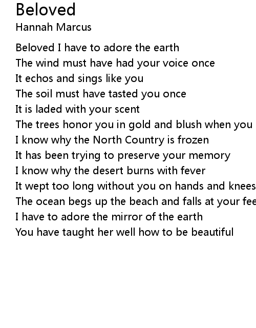 Beloved I have to adore the earth |