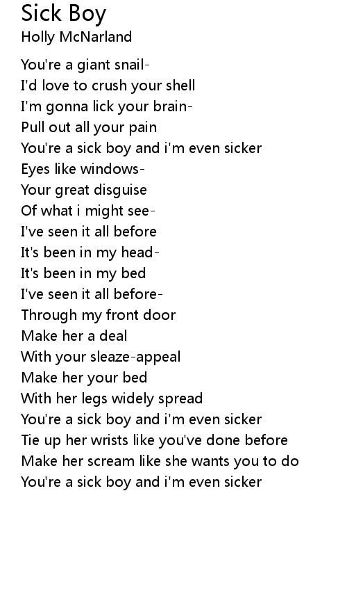 You're a sick boy and i'm even sicker |
