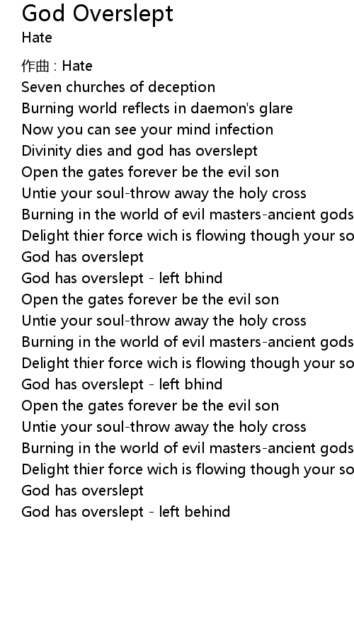 | God has overslept left behind |