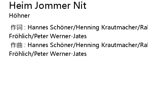 | [00:00.000] | 作词 : Hannes Schöner/Henning Krautmacher/Ralf Rudnik/Jan Peter Fröhlich/Peter Werner-Jates |