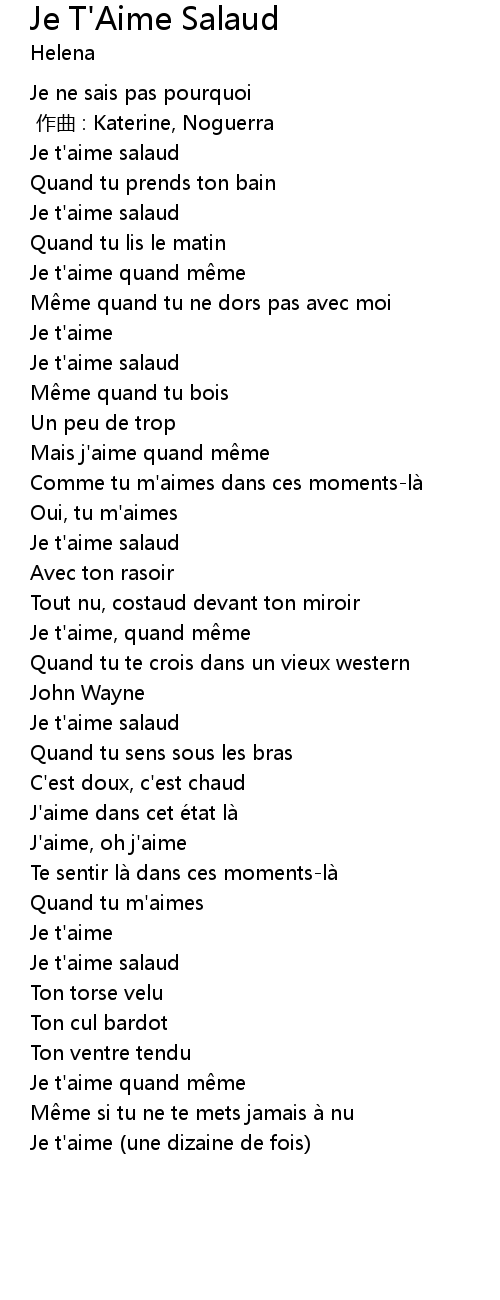 | [02:44.000] | Je t'aime (une dizaine de fois) |