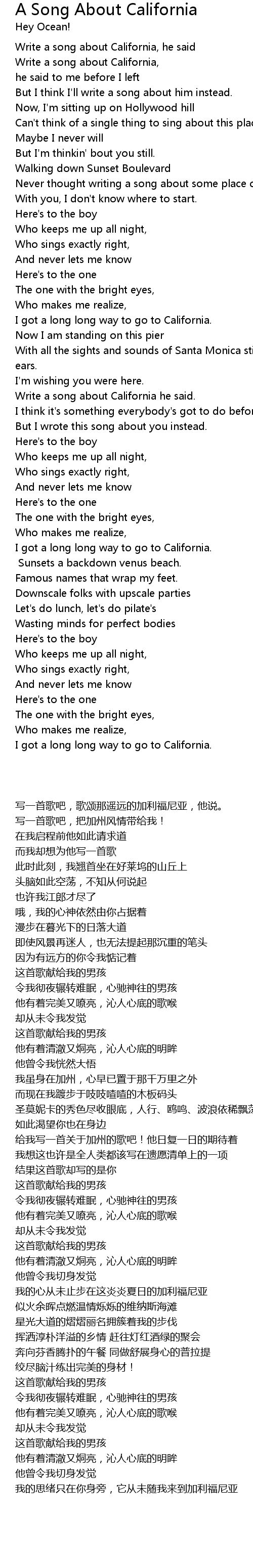 Write a song about California, |