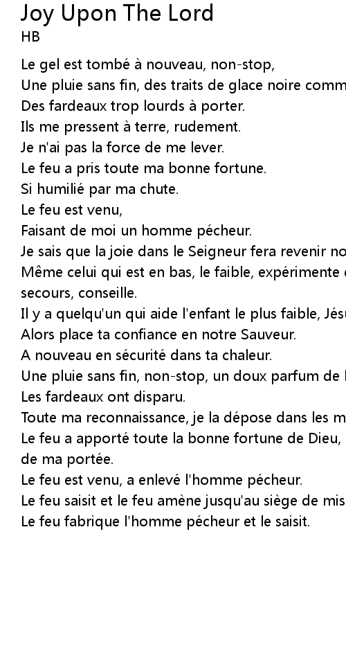 | Song | Joy Upon The Lord |