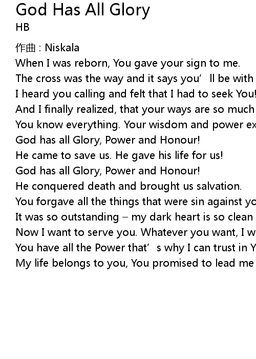 | Song | God Has All Glory |