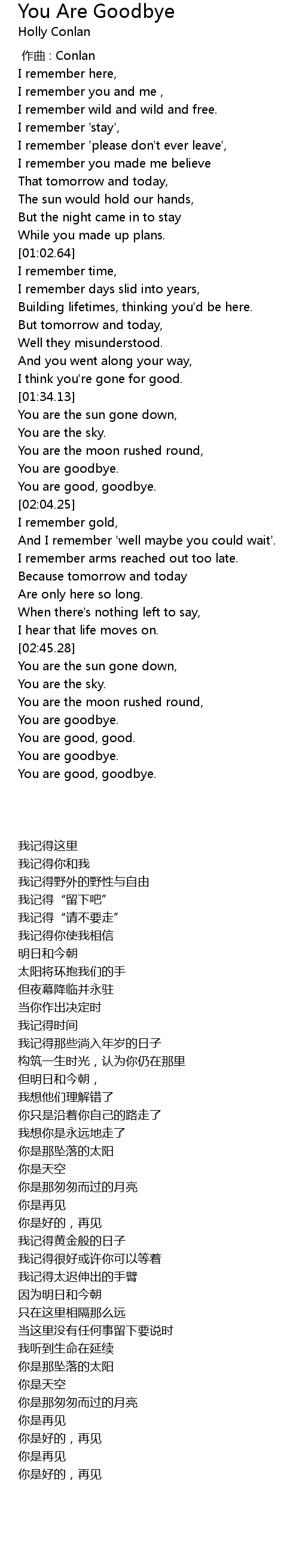 | [01:54.41] | You are goodbye. |