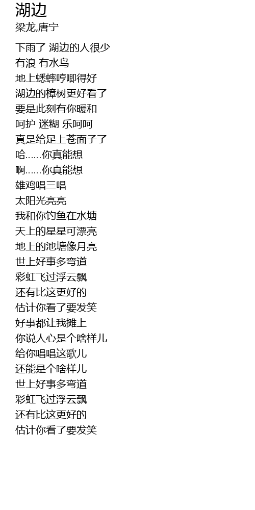 | [00:27.84] | xià yǔ le hú biān de rén hěn shǎo |