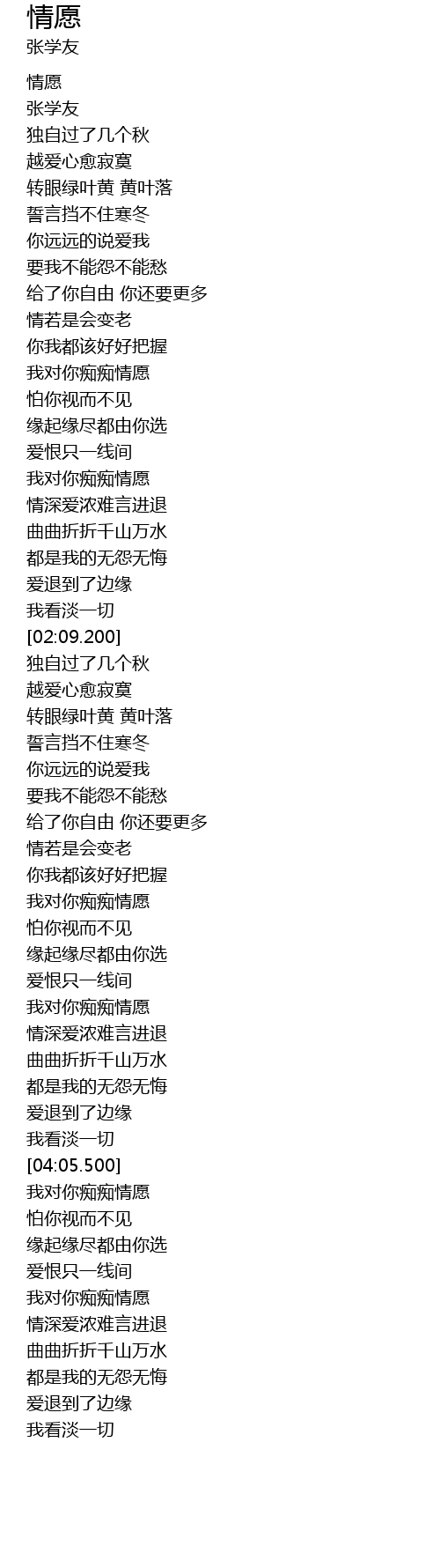| [04:33.500] | wo dui ni chi chi qing yuan |