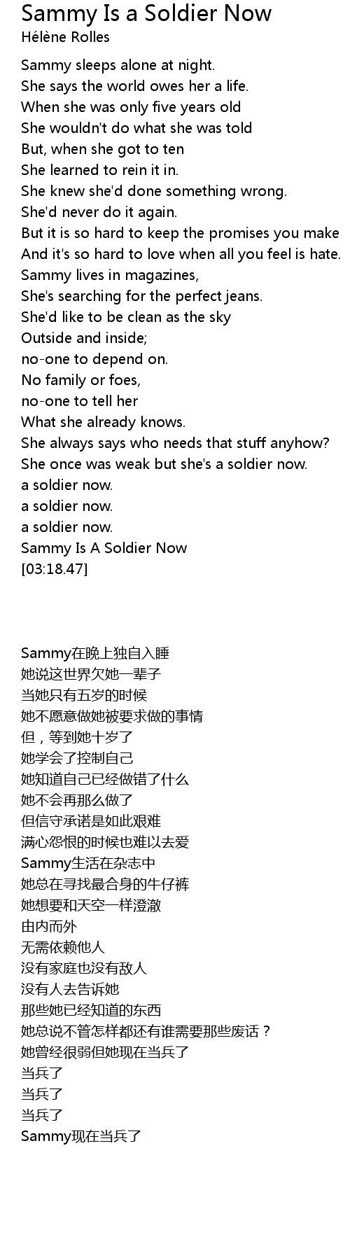 Sammy Is A Soldier Now |