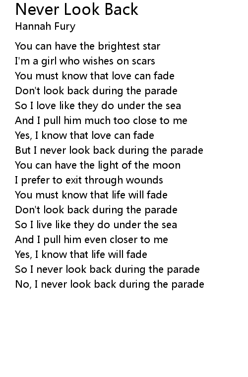 So I never look back during the parade |