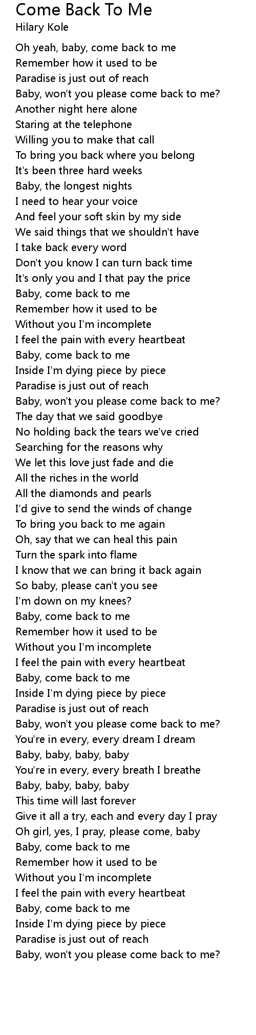 Baby, come back to me |