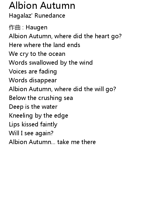 | Song | Albion Autumn |