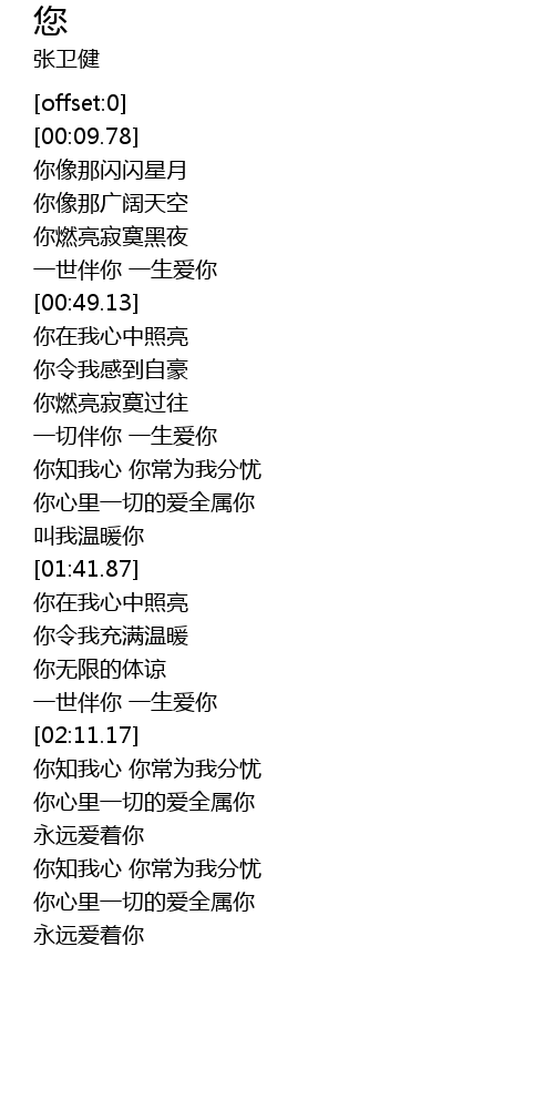 | [02:35.50] | 你知我心 你常为我分忧 |