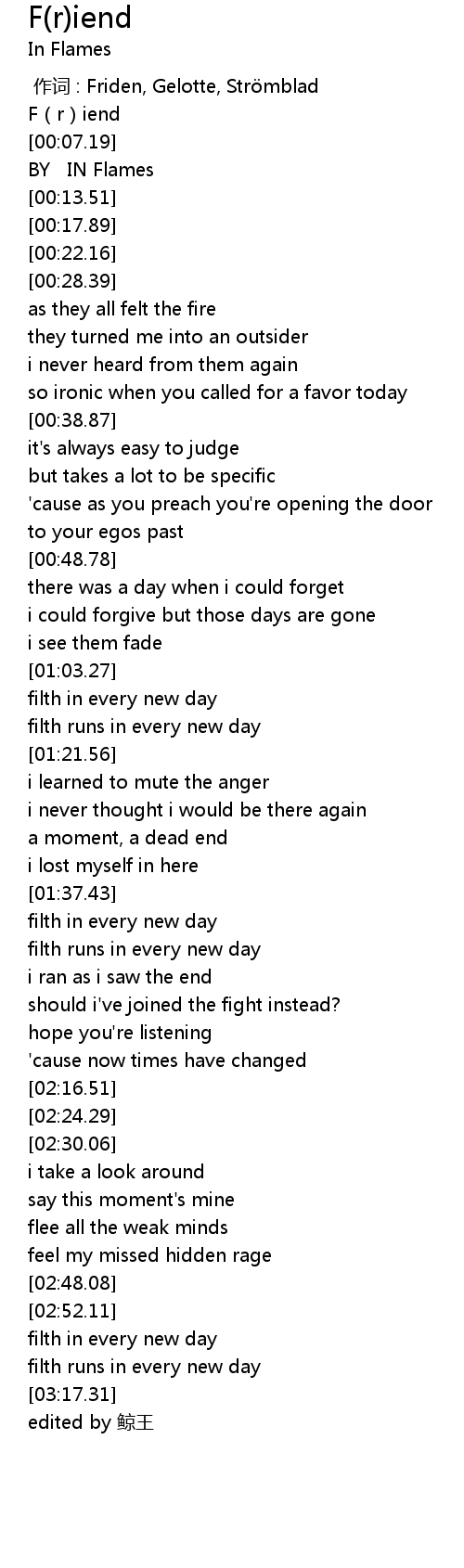 | [00:00.00] | 作词 : Friden, Gelotte, Strömblad |