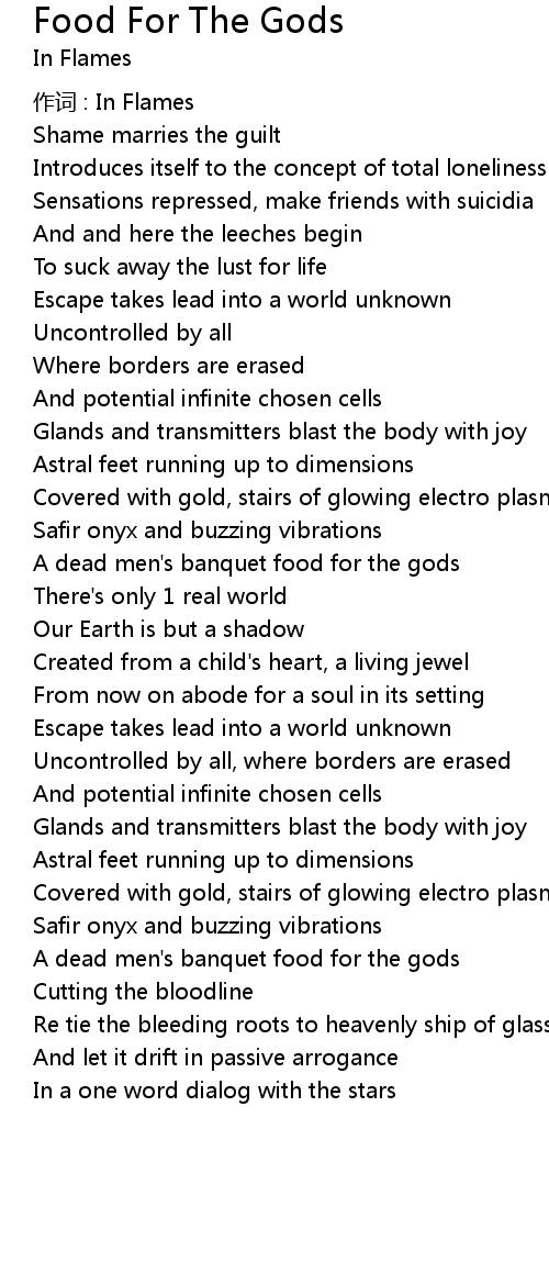| Song | Food For The Gods |