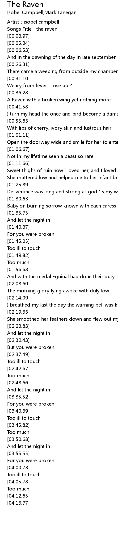 | [00:37.34] | A Raven with a broken wing yet nothing more |