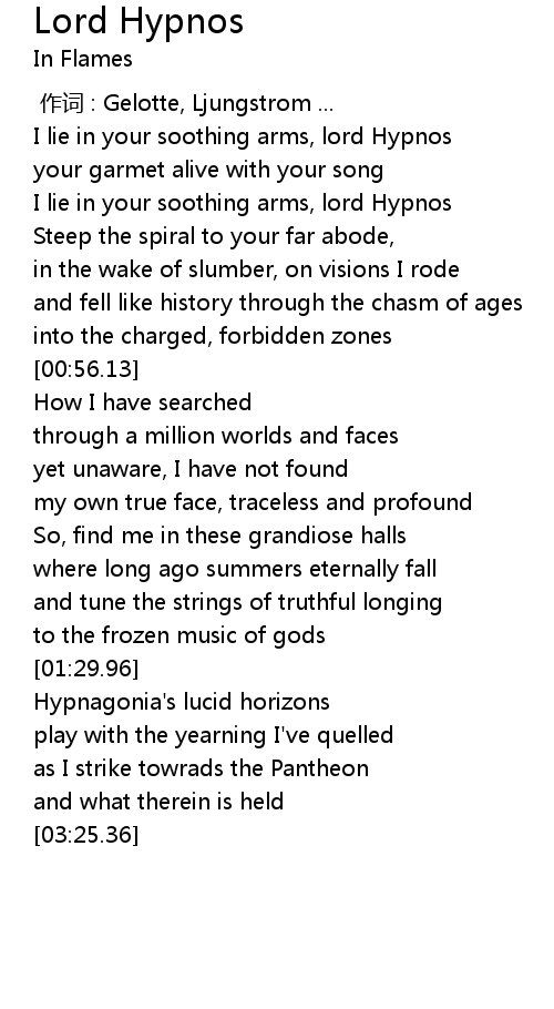 | [00:34.32] | I lie in your soothing arms, lord Hypnos |