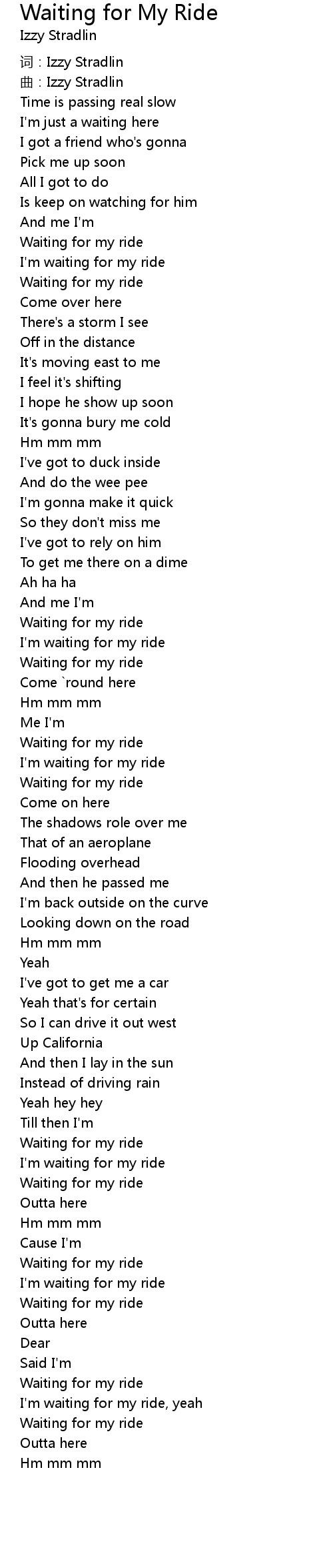 | [00:37.12] | Waiting for my ride |