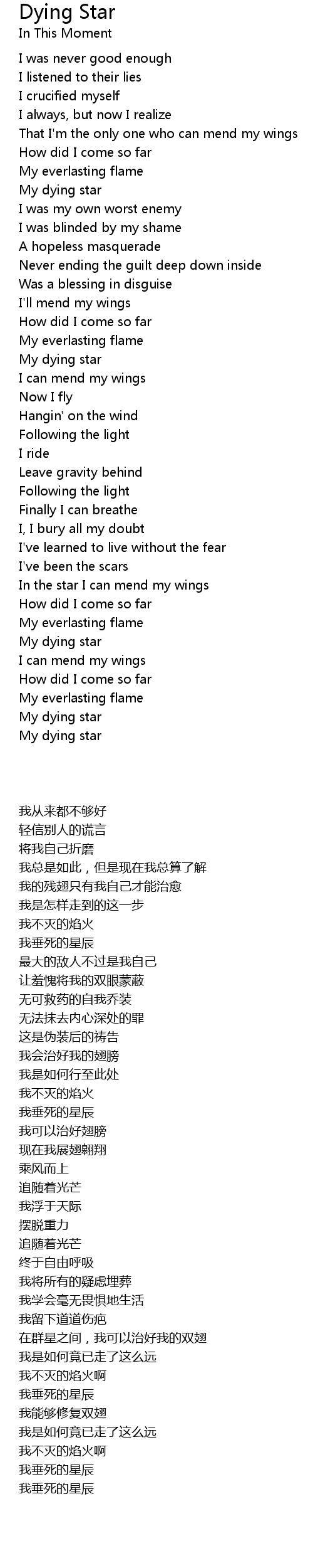In the star I can mend my wings |