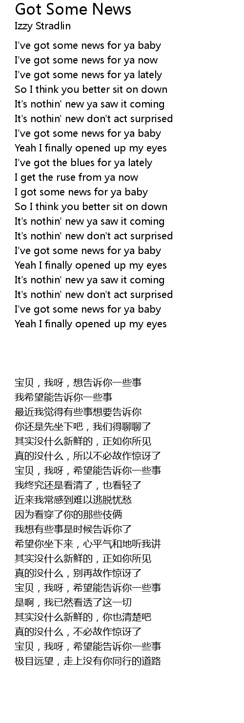 I've got some news for ya lately |