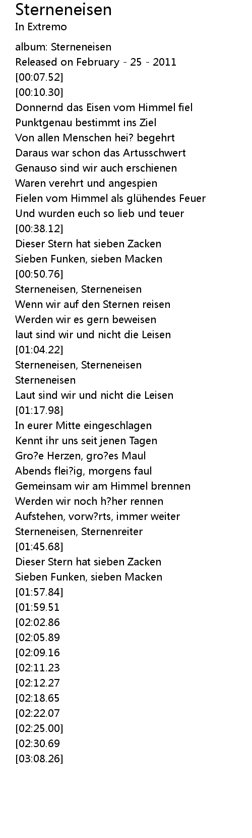 | [02:57.11][02:12.27] | Sterneneisen, Sterneneisen |