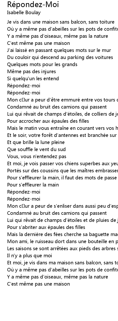 | Et moi, je vis dans ma maison sans balcon, sans toiture | |