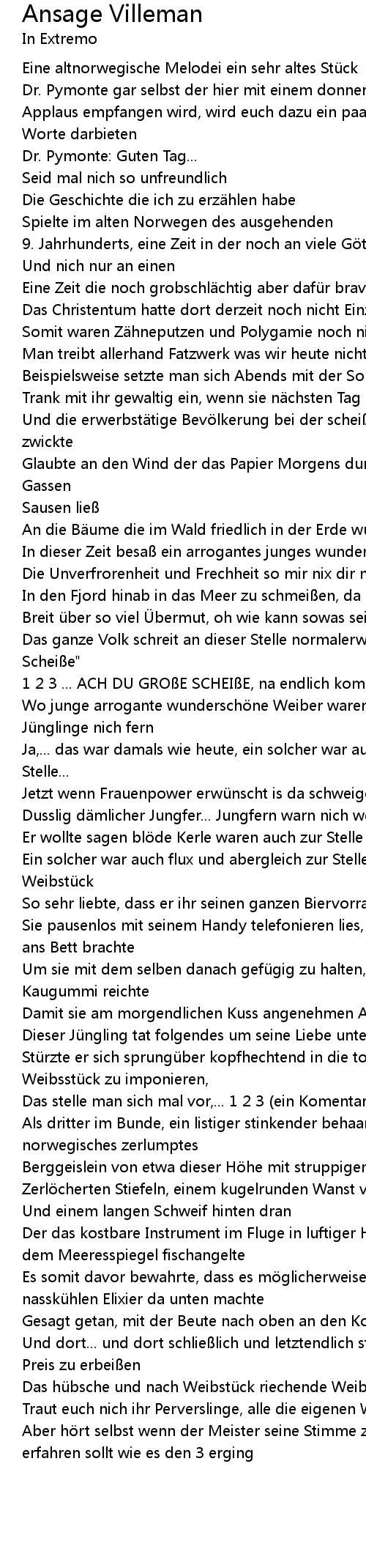 | Song | Ansage Villeman |